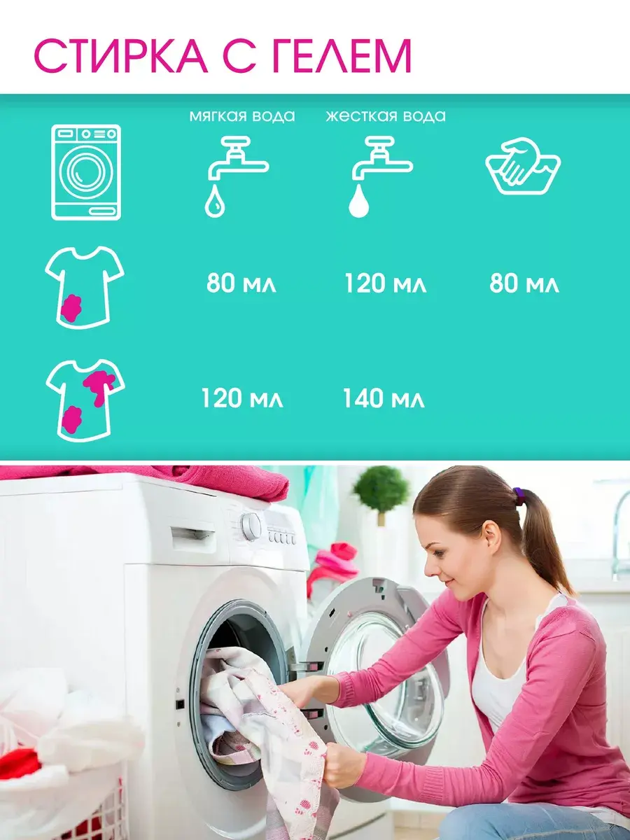Гель разработан для цветного белья из натуральных, синтетических и смешанных тканей, ручной и машинной стирки автомат при температуре от 20 до 75 градусов С. Эффективен даже в прохладной воде и на коротких циклах стирки.