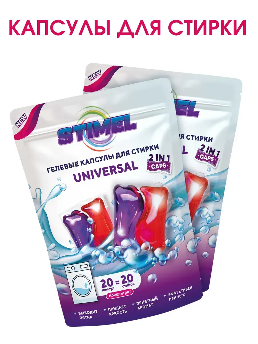 Капсулы для стирки белья Stimel Universal - удобное и эффективное концентрированное средство для поддержания чистоты и свежести одежды. Капсулы универсальные, поэтому подходят для цветных, черных и белых тканей. Они легко и бережно справляются с любыми загрязнениями и пятнами, сохраняя при этом цвет изделия и оставляя на вещах легкий свежий аромат. Не оставляют разводов на белье и полностью выполаскиваются из тканей.