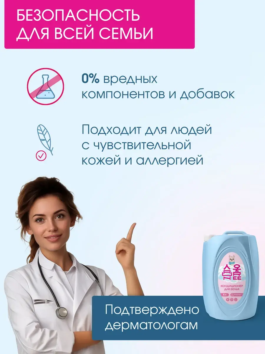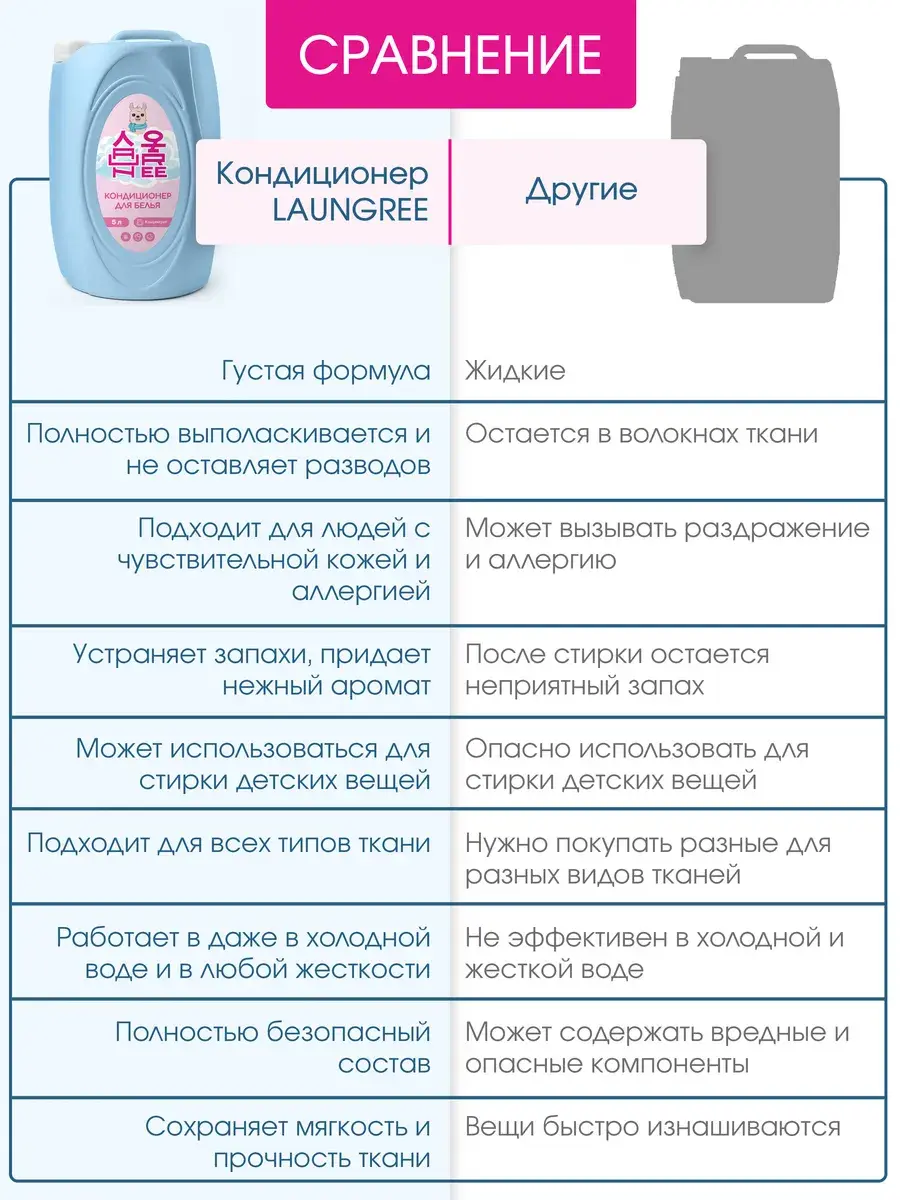Кондиционер для белья 5 л от российского бренда Laungree, разработанный по корейской технологии - это идеальный уход за вашим бельем! Его концентрированная формула обеспечивает исключительную мягкость и шелковистость тканей, делая каждую вещь приятной на ощупь. Легкий, свежий аромат создает атмосферу чистоты и уюта, а антистатический эффект помогает избежать электризации вещей. Подходит как для ручной, так и для машинной стирки, полностью выполаскивается из белья. Экономичный расход делает его выгодным приобретением. Ополаскиватель подходит для всех видов тканей, а также для всех цветов (черных, белых и цветных). Гипоаллергенная формула подходит для всей семьи, включая маленьких детей и людей с чувствительной кожей. Универсальный и эффективный кондиционер работает даже в холодной и жесткой воде. Выбирайте лучшее в заботе о себе!