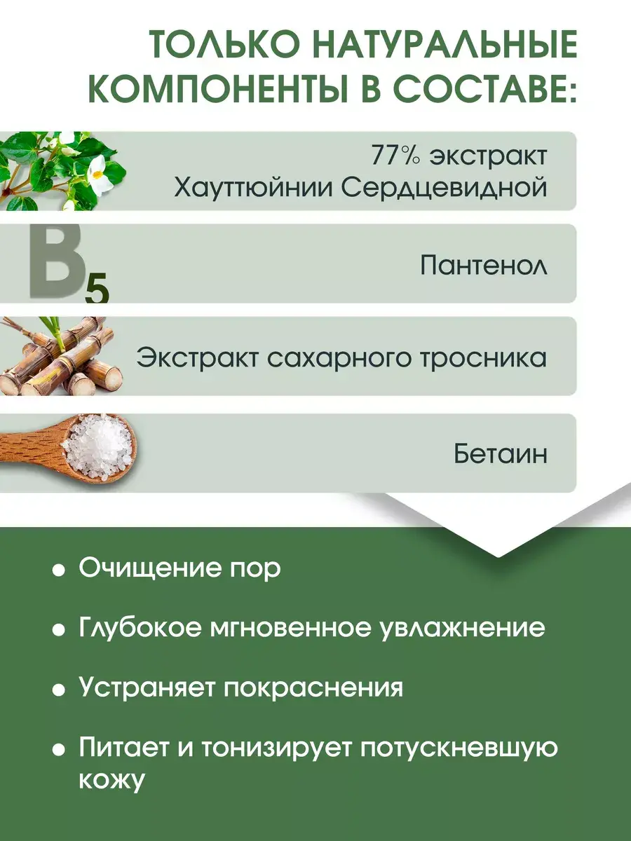 Оригинальный тонер от корейского бренда Ануа HEARTLEAF. Сертификат в карточке товара. Производится из натуральных компонентов без консервантов и парабенов. Подходит для всех типов кожи и всех возрастов. Сухой коже эссенция подарит ощущение свежести, она увлажнит, устранит шелушения и не оставит чувство стянутости. Жирной - поможет регулировать работу сальных желез, снимет раздражение, устранит воспаления и покраснения. Тоник Ануа состоит на 77% из экстракта хауттюйнии. Компонент знаменит своими успокаивающими свойствами, устранением красных пятен, зуда и раздражения. Тонер мягко воздействует на возрастную кожу, а также подойдет для подростковых проблем. Средство идеально для ежедневного использования на лице и шее. SOOTHING TONER дает ощущение комфорта и увлажненности. Он освежает цвет лица, выравнивает тон кожи и препятствует появлению покраснений. Абсолютно неаллергичный состав дает возможность использовать его людям с тонкой, обезвоженной, реактивной кожей. Мягко устраняя несовершенства, косметика противостоит многим проблемам, с которыми вы можете столкнуться. Активный компонент экстракта сердечного листа Гуттуиния предотвращает появление постакне, осветляет пигментные пятна. Он эффективно поддерживает барьерную функцию дермы, уменьшая реакцию на аллергены. Без отдушек и красителей. Вся уходовая косметика проверяется дерматологами. Не закупоривает поры.