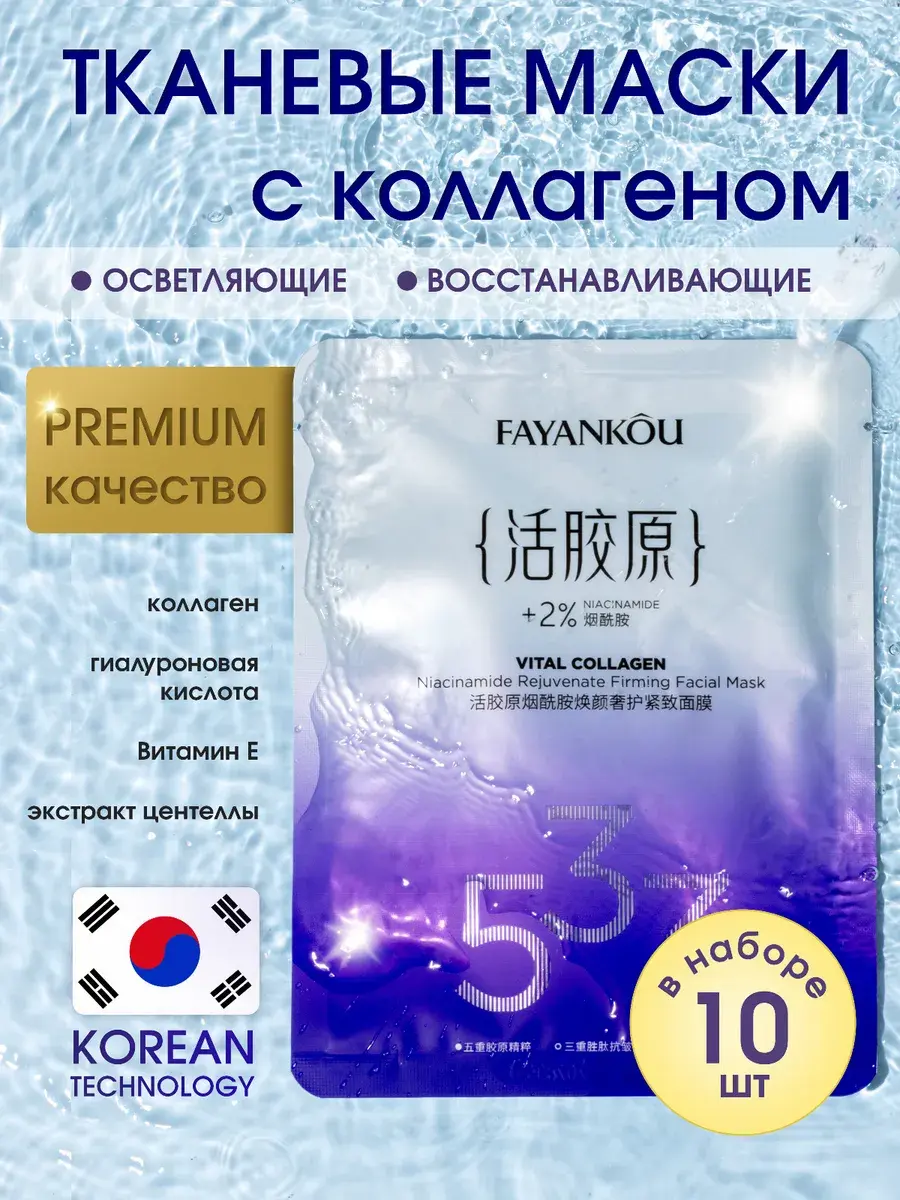 Набор из 10 премиальных тканевых масок для лица от корейской фирмы Fayankou осветляющие и восстанавливающие идеальны для ежедневного ухода за кожей лица. Косметические масочки обогащены уникальным составом, включающим гиалуроновая кислота интенсивно увлажняет кожу, удерживает влагу, витамин Е мощный антиоксидант, защищает от преждевременного старения, глицерин поддерживает уровень влаги, предотвращает сухость, экстракт центеллы азиатской способствует заживлению и уменьшает воспаления. Эти компоненты эффективно питают и увлажняют кожу, помогают снять отечность и придать ей здоровый и сияющий вид.