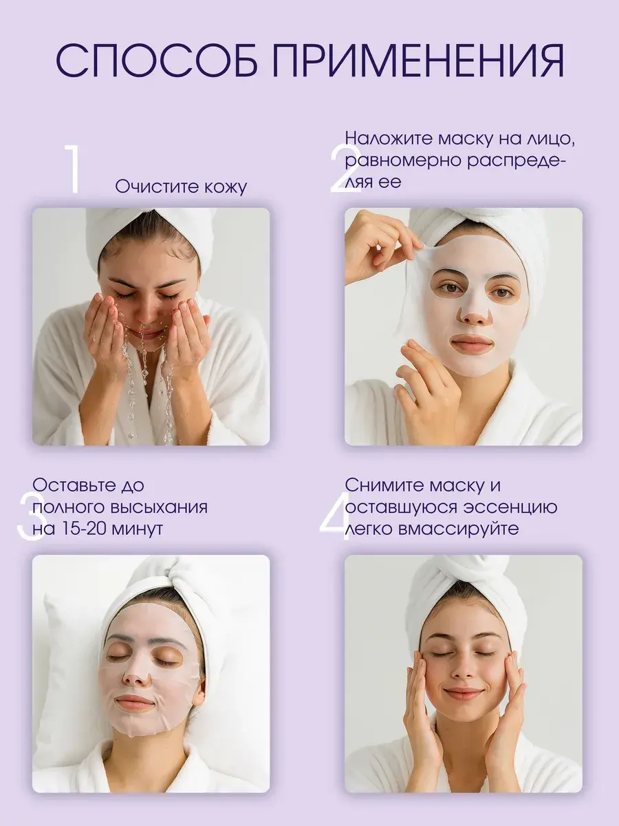 Не упустите возможность порадовать свою кожу и сделать процедуру ухода за лицом еще приятнее с этим набором тканевых масочек!