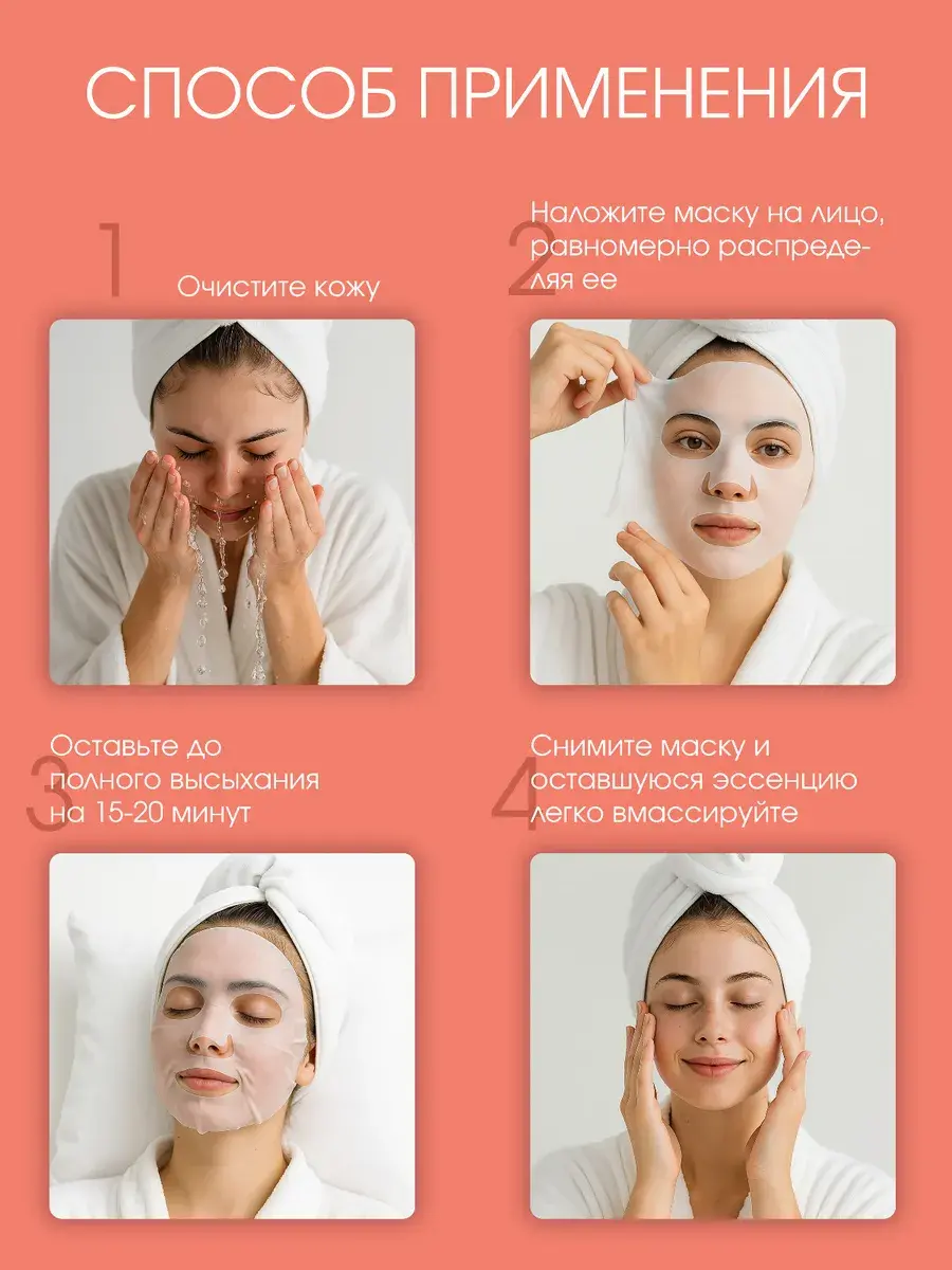 Не упустите возможность порадовать свою кожу и сделать процедуру ухода за лицом еще приятнее с этим набором тканевых масочек!