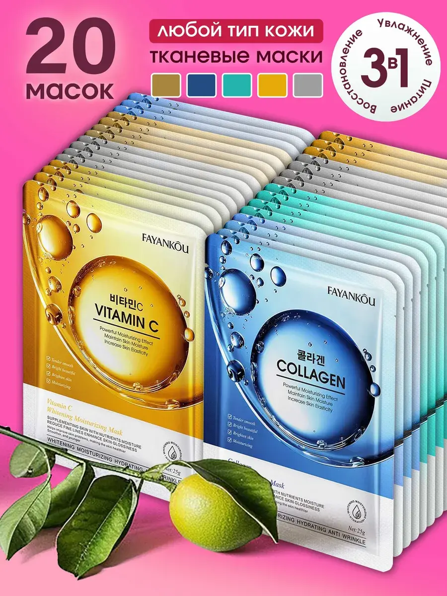 Набор корейских тканевых масок Fayankou идеален для ежедневного ухода за кожей лица.