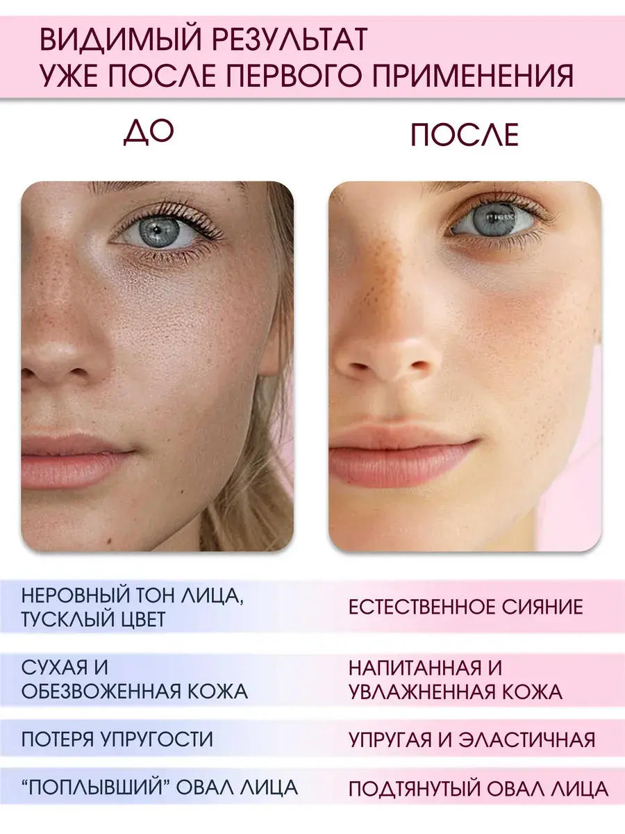 Коллаген - увлажняет, разглаживает морщины, повышает эластичность.